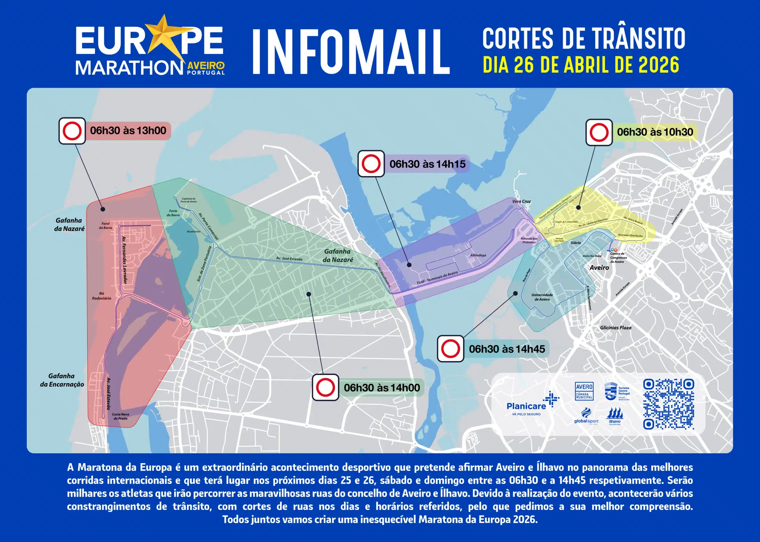 - A Maratona, Meia Maratona e Caminhada realizam-se domingo, dia 26 de abril de 2026, pelas 08:00 horas.